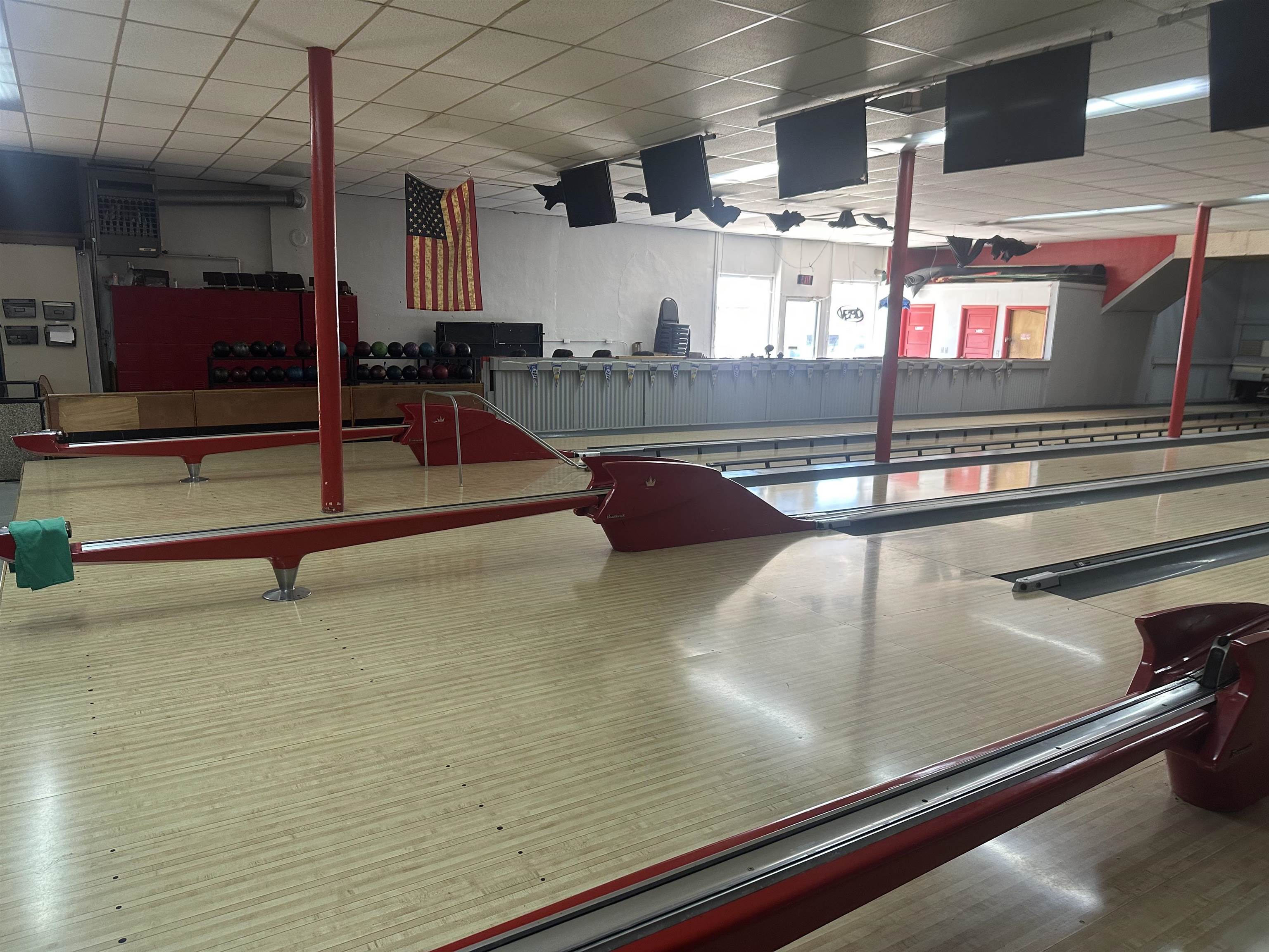 Great opportunity to own a building in the heart of downtown! with over 7000 sq feet of finished space you can continue operating as a bowling alley and bar or create your own vision! Upstairs could be finished into apartment units. So much potential! All inventory and most equipment to be included.